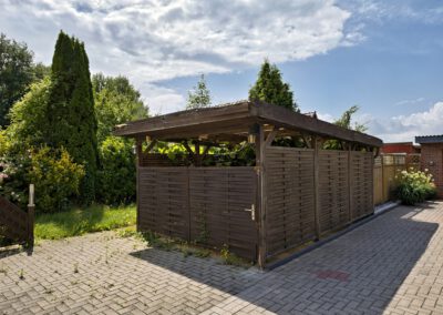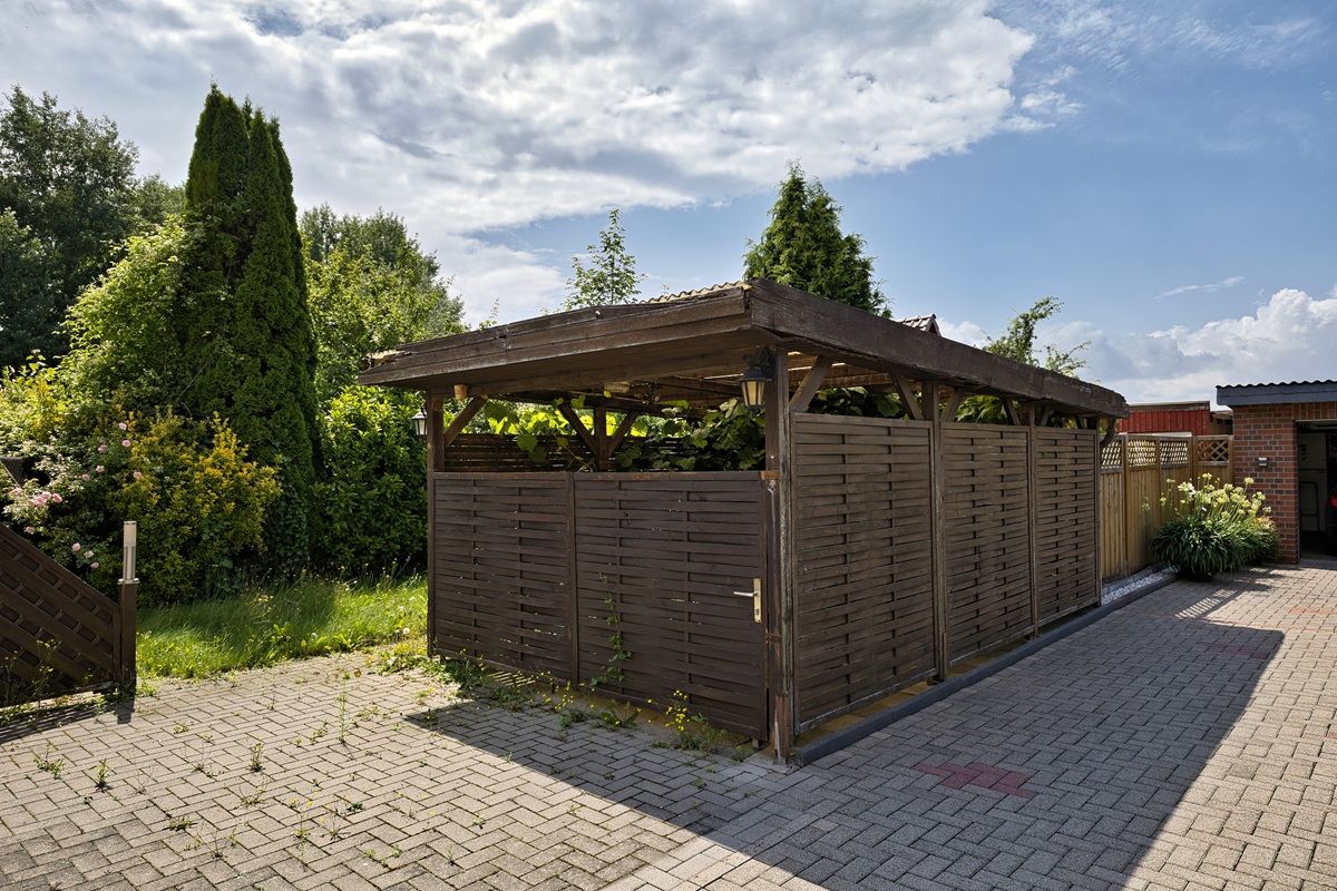 Ein Holzcarport, eine separate Werkstatt, ein Partyraum im Garten und ein kleines Gewächshaus erweitern die Nutzungs- und Gestaltungsmöglichkeiten deutlich. Die Sanitäranlagen befinden sich in einem guten Zustand – ein klarer Vorteil im Vergleich zu sonst ähnlich gelagerten Objekten. Aktuelle Brandschutzvorgaben wurden im Juli 2025 umgesetzt.